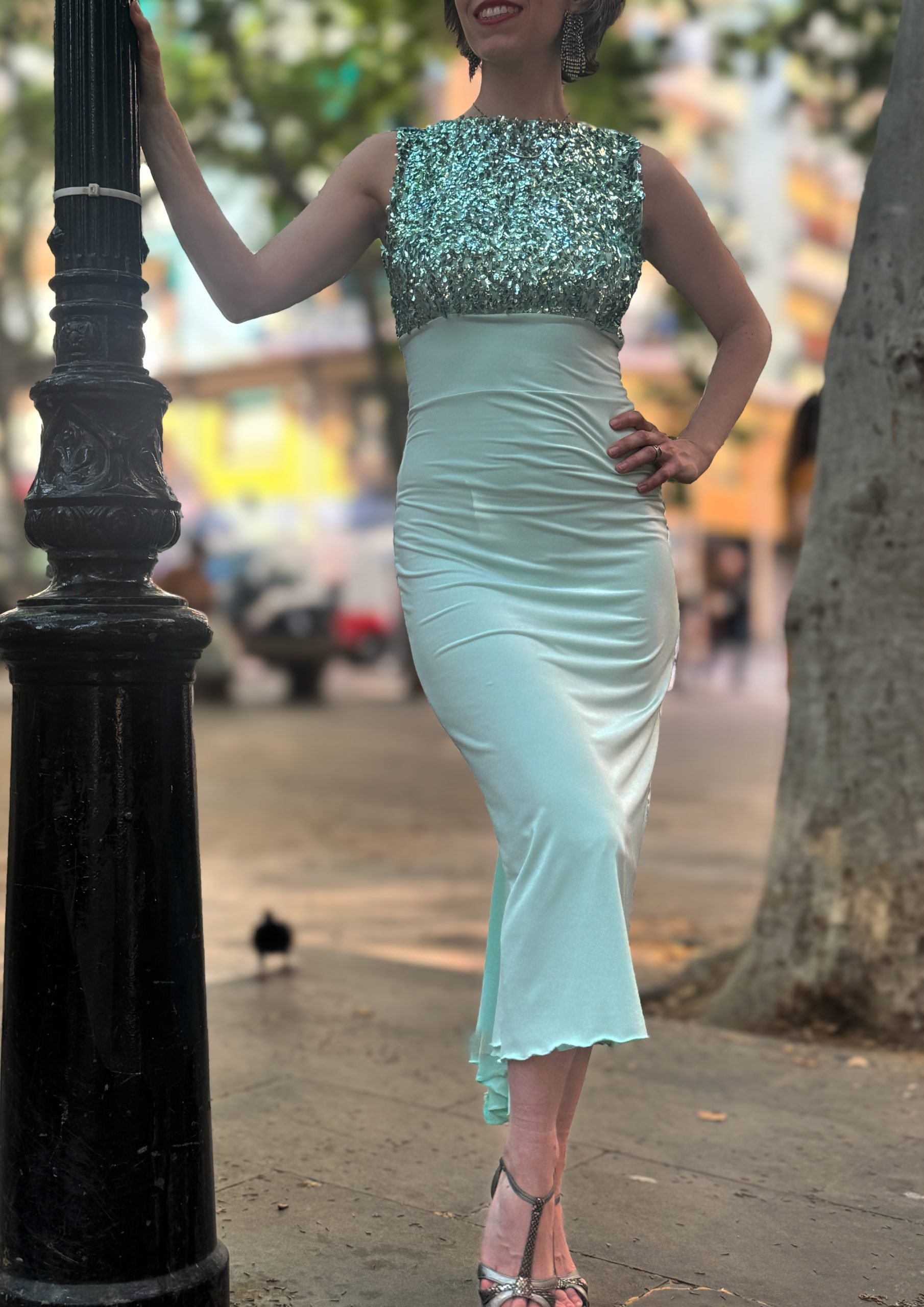 Realizado en paiettes y forrados con seda fría en su totalidad. Te van a hacer sentir elegante, hermosa y en total libertad.